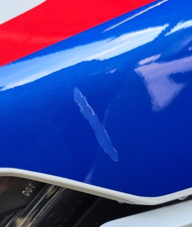 Beim reinigen mit Hochdruck in der Waschanlage heute ist mir bei der linken Kanzel oberhalb des Scheinwerfers der Lack abgeplatzt. Es scheint bei der RR ja eine Art Folie darüber zu sein, sodass man nicht mal mit einem Ersatz Aufkleber den Schaden richtig beheben könnte da man das alte nicht lösen kann.