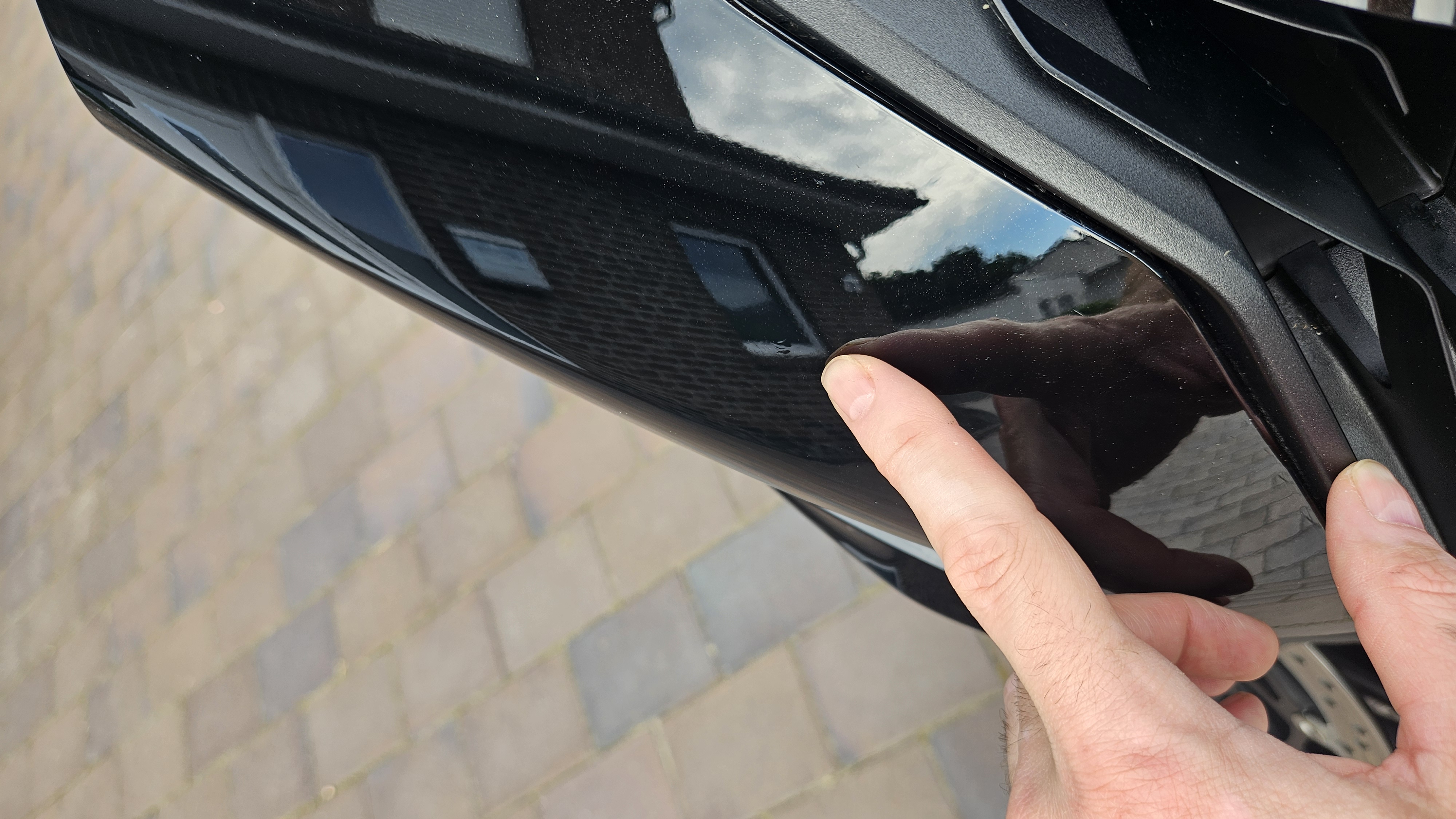Ein weiteres Problemchen ist aber auch, daß es sich kleine Bläschen vorne auf der Kanzel bilden, sobald die Maschine länger in der Sonne steht und aufgeheizt wird. Diese sind ca. 5-10mm im Durchmesser und sind unter dem Lack. Sobald die Maschine im Schatten abkühlt, ziehen sie sich zusammen. Dann ist lediglich nur eine Art Film/ Verformung im Lack zu sehen.