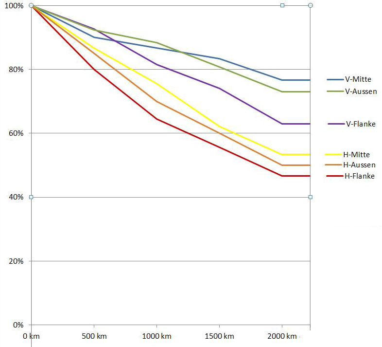 Zwischenstand zum Reifenverschleiß nach 2000km.