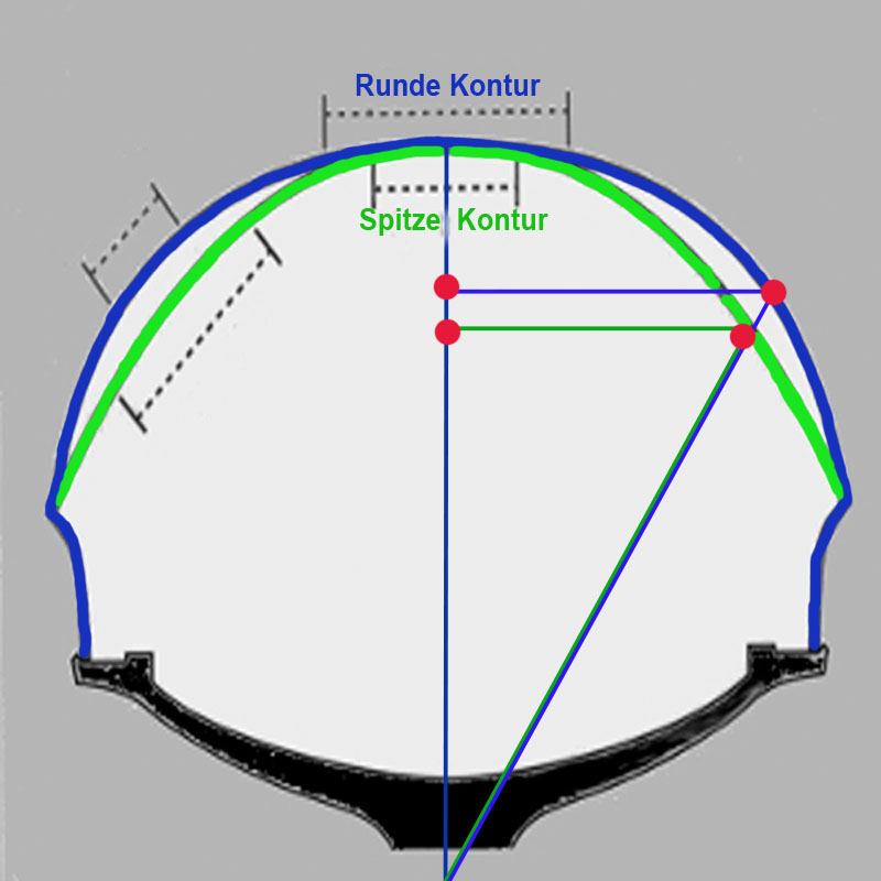 Wenn du noch einmal genauer ließt , habe ich Stellung zu der gleichen Reifengröße mit anderer Kontur genommen , dass Bild soll dir nur Zeigen , dass die großen Konturveränderungen erst mit einer anderen Reifengröße beginnen , okay ich sollte langsamer schreiben für die Älteren wie dich ...![]()