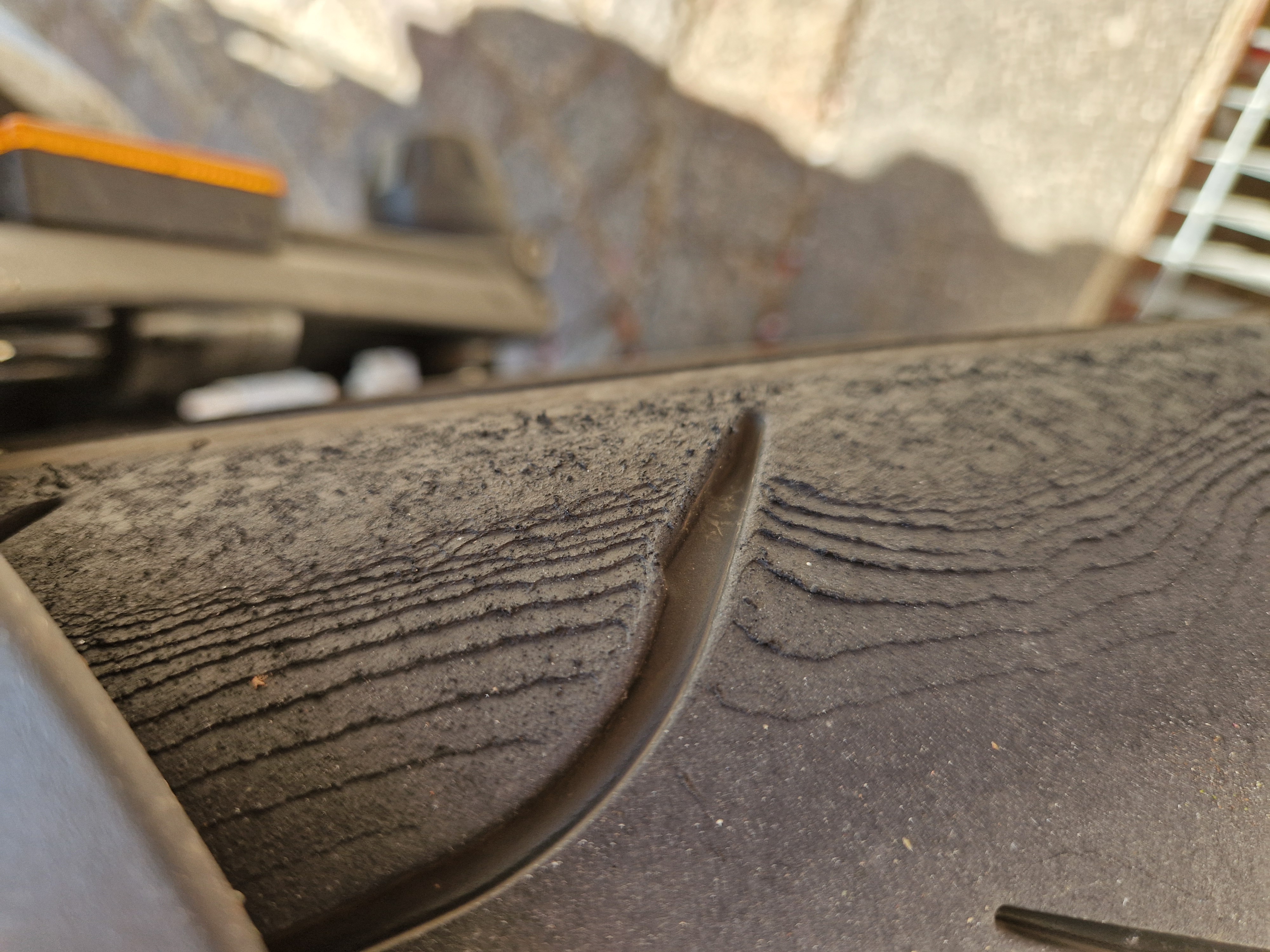 Bei Deinen ersten Bildern dachte ich, dass wären Riefen im Reifen. Aber auf den neueren Bildern sieht man, dass das Grate sind, also nach oben wegstehen.