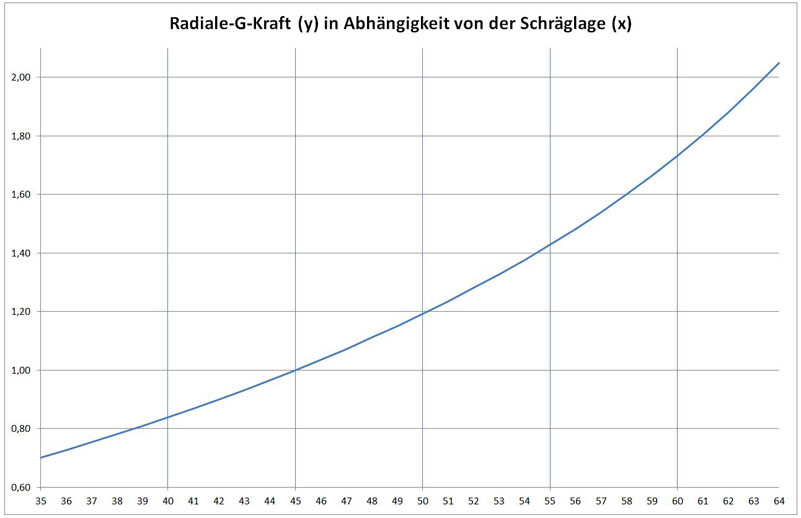 Je weiter man die Schräglage zieht, je mehr gleichen sich die Abstände. Und damit gleichen sich die jeweiligen notwendigen Schräglagen.