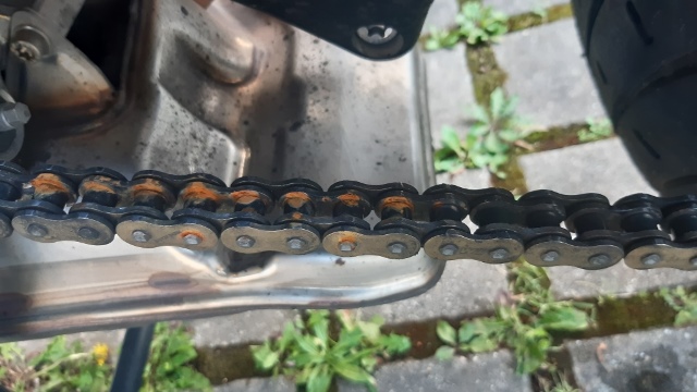 Während der ca 3500km-Tour durfte ich die Kette 2x nachspannen! Jetzt sind auch noch die ersten O-Ringe defekt...