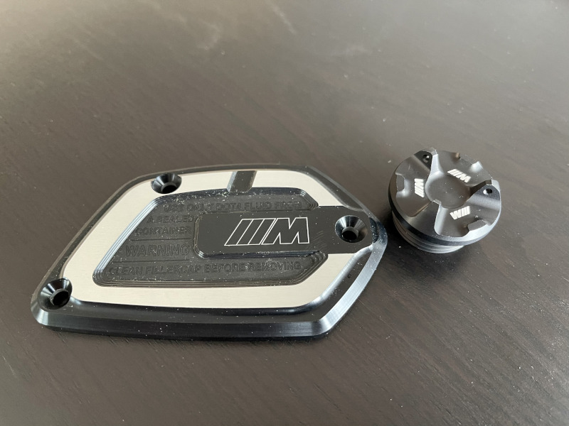 Hier noch ein Bild von der M-Öleinfüllschraube und der M-Abdeckung Bremsflüssigkeitsbehälter vorne: