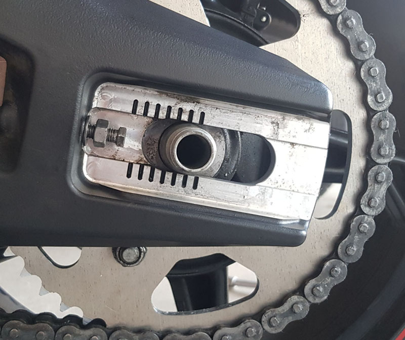Ist ja schön, dass die Achsführung in der Schwinge einen so großen Bereich hat, wo man variieren kann.