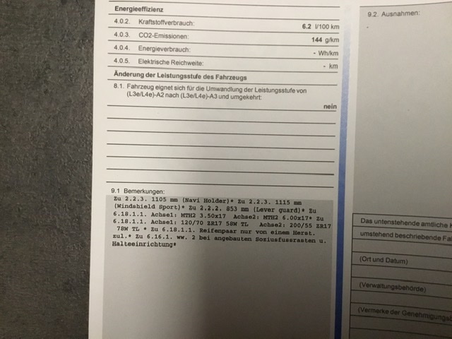 Da steht z.B. die Fahrzeughöhe mit dem Windschild oder die Fahrzeugbreite mit den Hebelschützern.