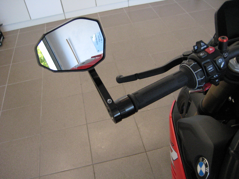 Ob die Lösung auch mit Handguards funktioniert bezweifele ich etwas, da die Spiegel auf den neuen Endgewichten DRAUF sitzen. Diese sind dort wo der Spiegel sitzt entsprechend reduziert.