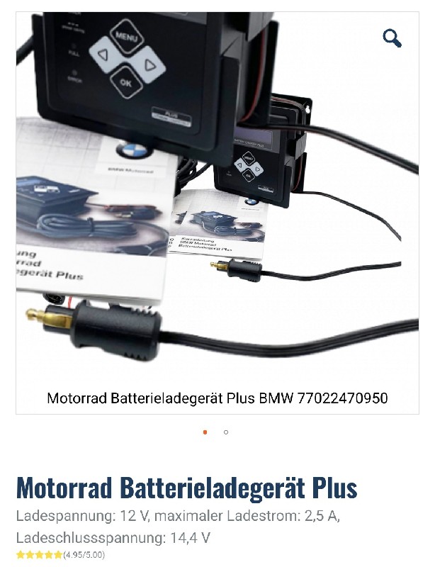 Es ist das Original BMW Ladegerät Plus für Motorrad (TN 77022470950). War ein Schnapper.