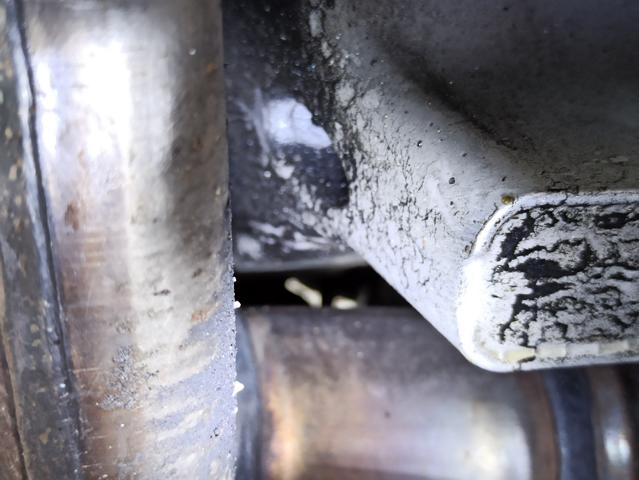 Deutlich im Bild zu sehen kommt Öl aus der Schnüffelbohrung und tropft über die Ölwanne ab. Ebenso ist der Wasserpumpendeckel undicht und eingeölt. Tropft auf die Seitenständeraufnahme und fließt über den Seitenständer ab, bzw. wird durch den Fahrtwind versprüht.