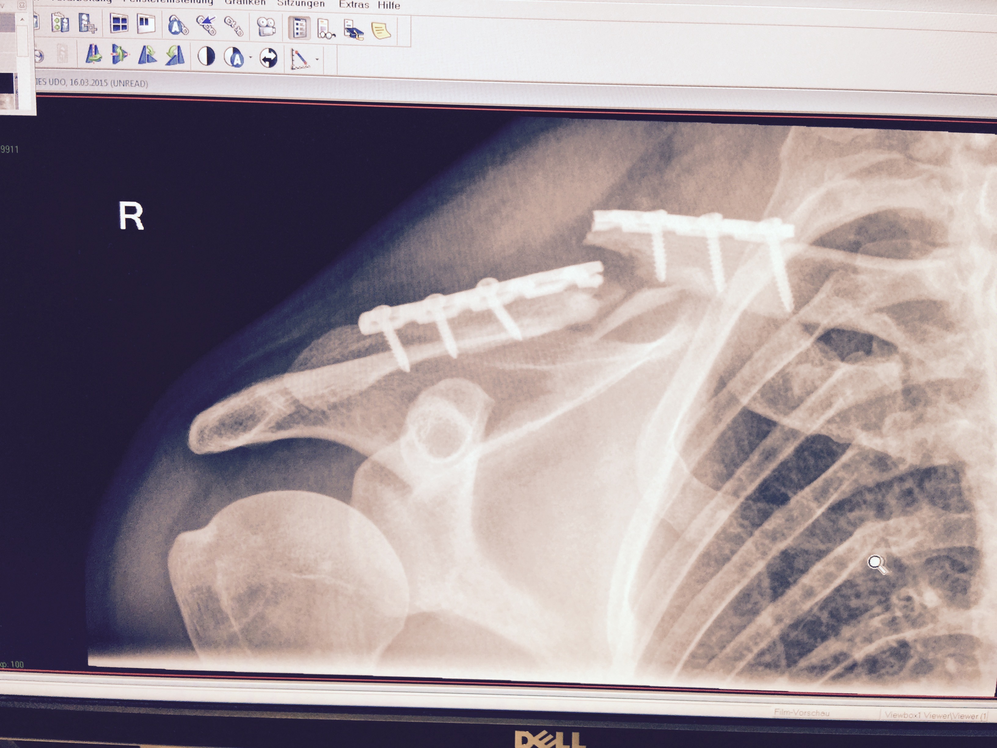 Also ich kann ja mal meine 2 cent beisteuern. Auch wenn es nicht das gleiche ist. Ich hatte einen Clavicula RE Trümmerbruch. Die Erste OP war gelaufen und mir wurde eine viel zu dünne Titanplatte eingeschraubt. Die Trümmer von der Assiärztin mit Nähfaden umwickelt. Wenn gewünscht hau ich auch Röntgenfotos rein, was aber für mich zweitrangig ist.