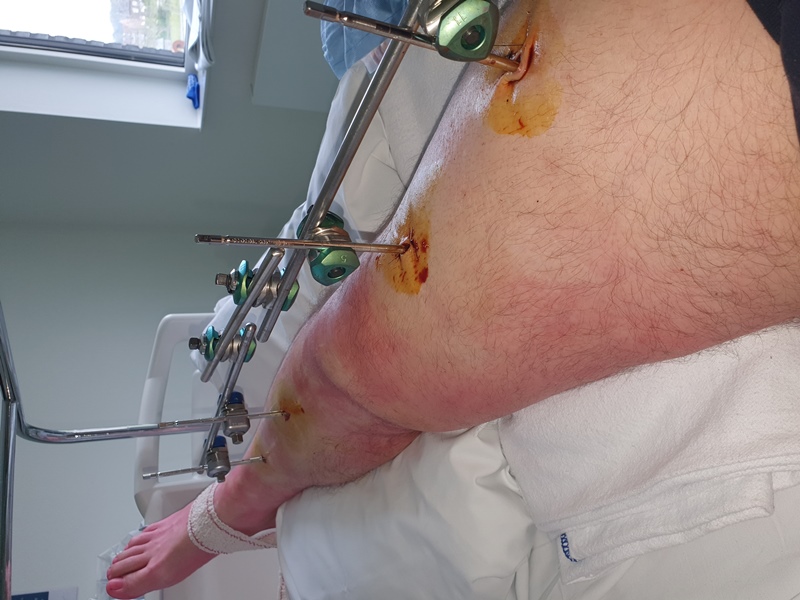 Lange Rede, kurzer Sinn, Schienbein rechts innen durch den Zylinder zerschmettert!