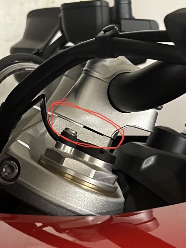 Die Bewegung kommt aus diesem Bereich, wo der Lenker auf die Gabelbrücke montiert ist: