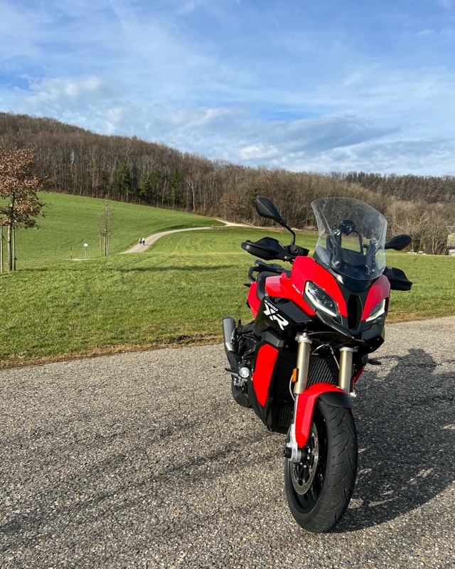 Es wird eine S 1000 XR in Racing Red Uni mit Schmiederädern, Zusatzscheinwerfern, hohem Windschild und mit Seitenkoffern mit Blenden in Blackstorm Metallic werden. Details zur Konfiguration findet ihr hier: https://mein.bmw-motorrad.ch/mcze81pq