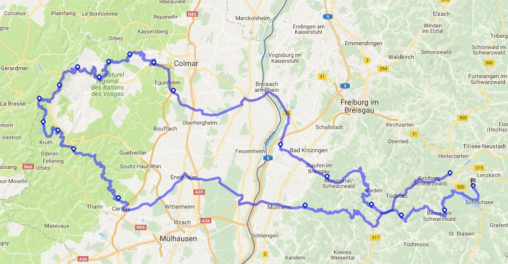 Ich fahre ja selber ungern bei den Galliern aber der Vollständigkeit halber auch noch eine Strecke in den Vogesen.