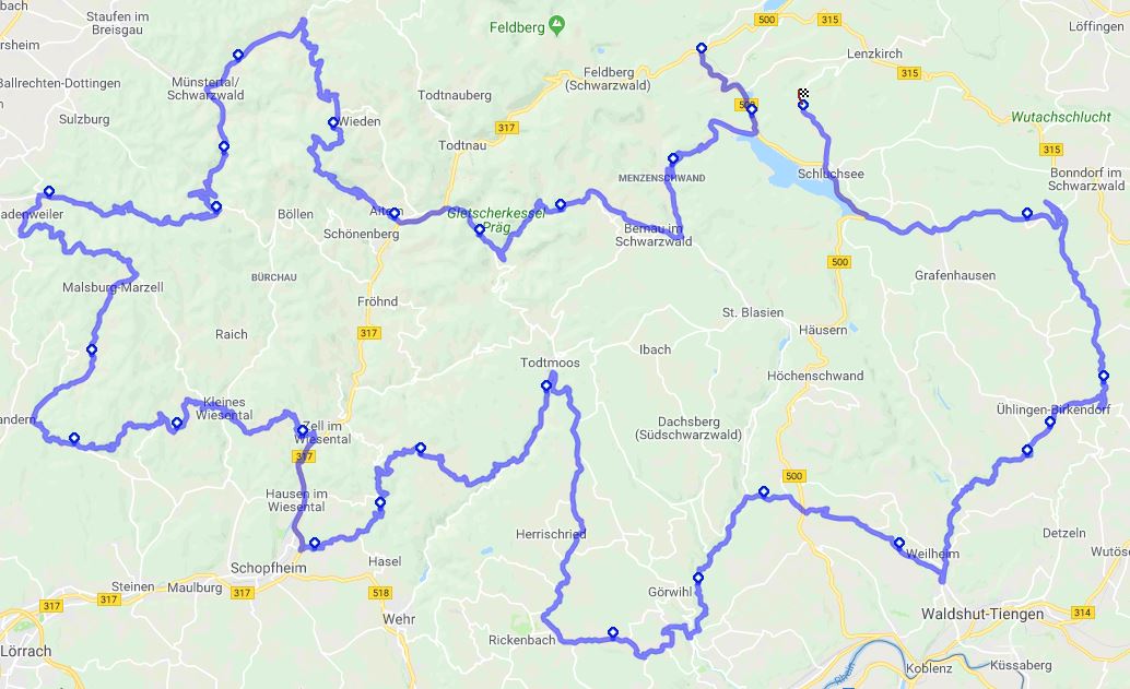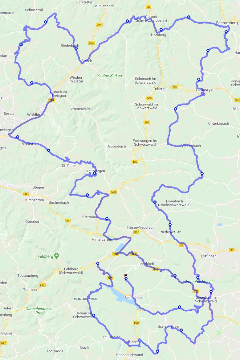 Auf dieser Tour halten wir uns nach der Wutachschlucht direkt nördlich Richtung St. Georgen, Schramberg und Alpirsbach. Anschliessend geht es dann übers Kinzigtal wieder retour.