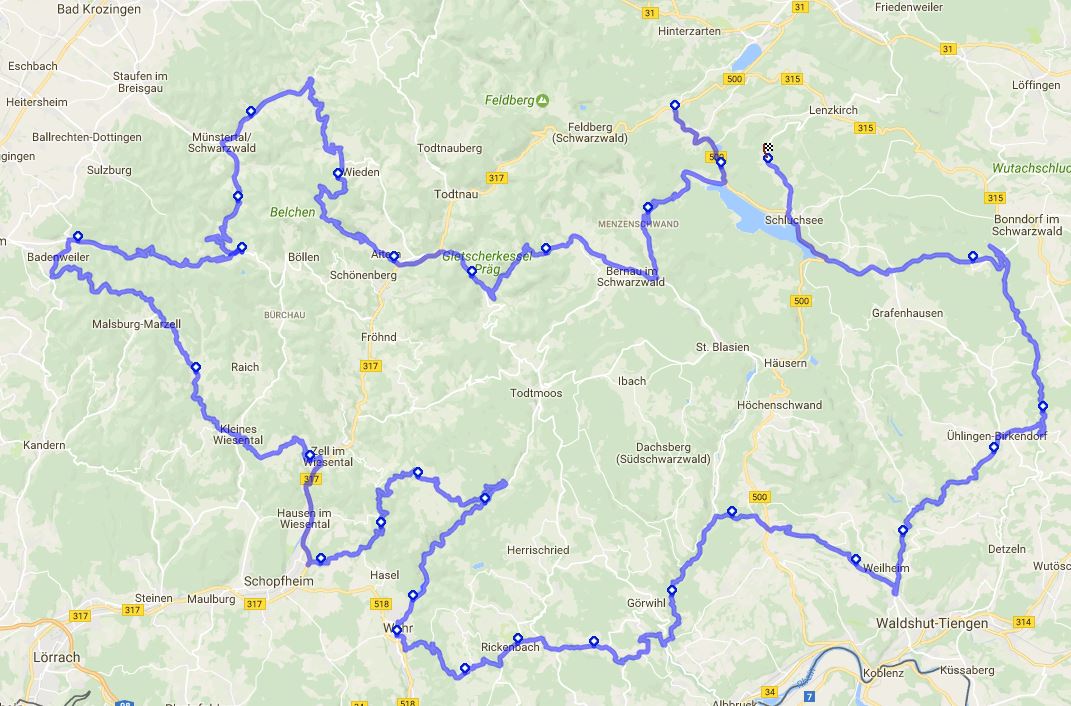 Auf dieser Tour halten wir uns nach der Wutachschlucht direkt nördlich Richtung St. Georgen, Schramberg und Alpirsbach. Anschliessend geht es dann übers Kinzigtal wieder retour.