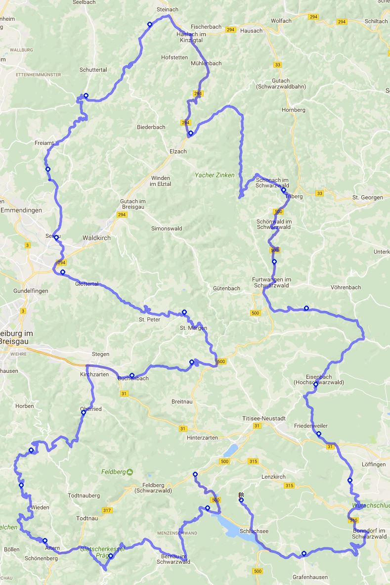 Tour 3: Schwarzwald NordOst -290kmAuf dieser Tour halten wir uns nach der Wutachschlucht direkt nördlich Richtung St. Georgen, Schramberg und Alpirsbach. Anschliessend geht es dann übers Kinzigtal wieder retour.