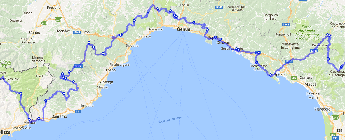 Hat schon jemand Erfahrung mit dem Abschnitt in Ligurien? (Mittelmeer, Nizza ---> Genua)(siehe Bild; ist nur ein Teilabschnitt)