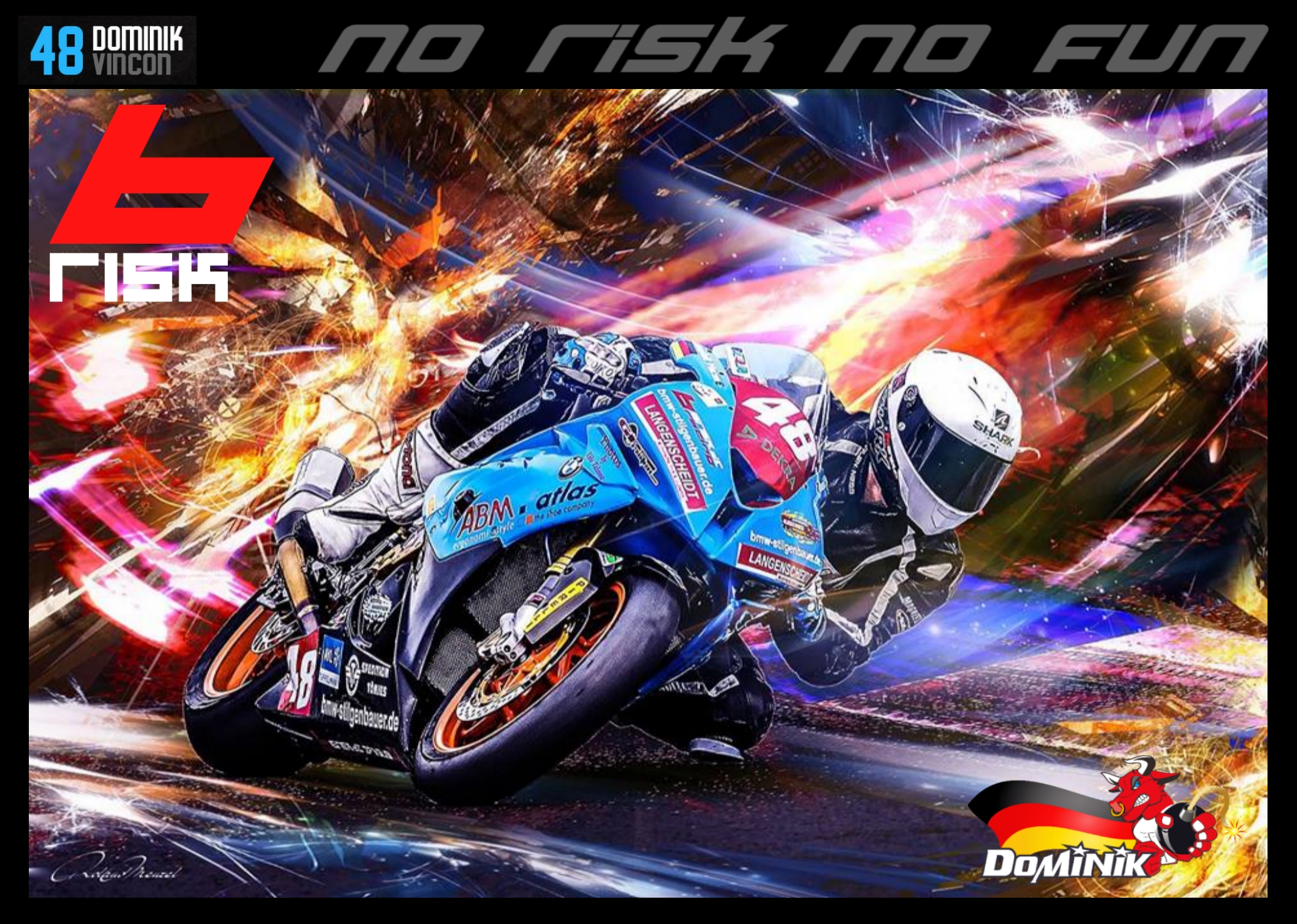Klar bin ich da ... es geht ja schließlich um den HEIMSIEG von Dominik. Er pilotiert die Stock-BMW (48) in bluefire.