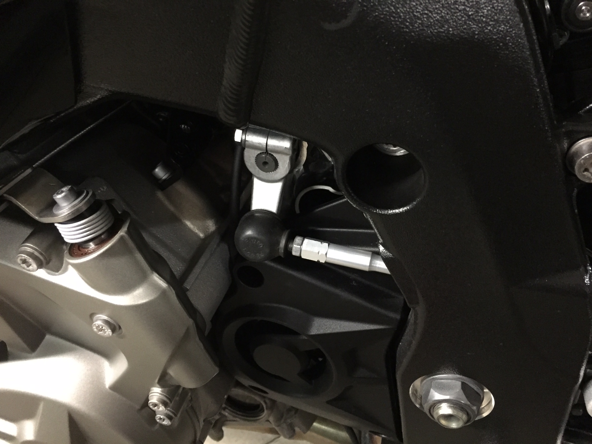 Kann ich den Quickshifter an der oberen Seite mit der einen Schraube lösen und dann zusammen mit der Fußraste (nach hinten) durch den Rahmen ziehen, da ich ja nicht an die untere Schraube komme, da die Kette im Weg ist. Des Weiteren müsste ich den schwarzen Kabel ebenfalls lösen und auch durch den Rahmen ziehen.