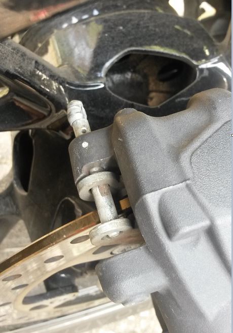 Vor Ausbau den Bremssattel ganz bis Anschlag Richtung Radinnere Drücken, damit der Kolben reingeht und man die neuen Beläge reinbekommt.