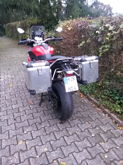 (Noch was Touratech verkauft das als Set eigentlich mit den 31-l Koffern, meine auf den Bildern sind 45-l Koffer.) Wie sich das beim Fahren verhält, werde ich sehen ...