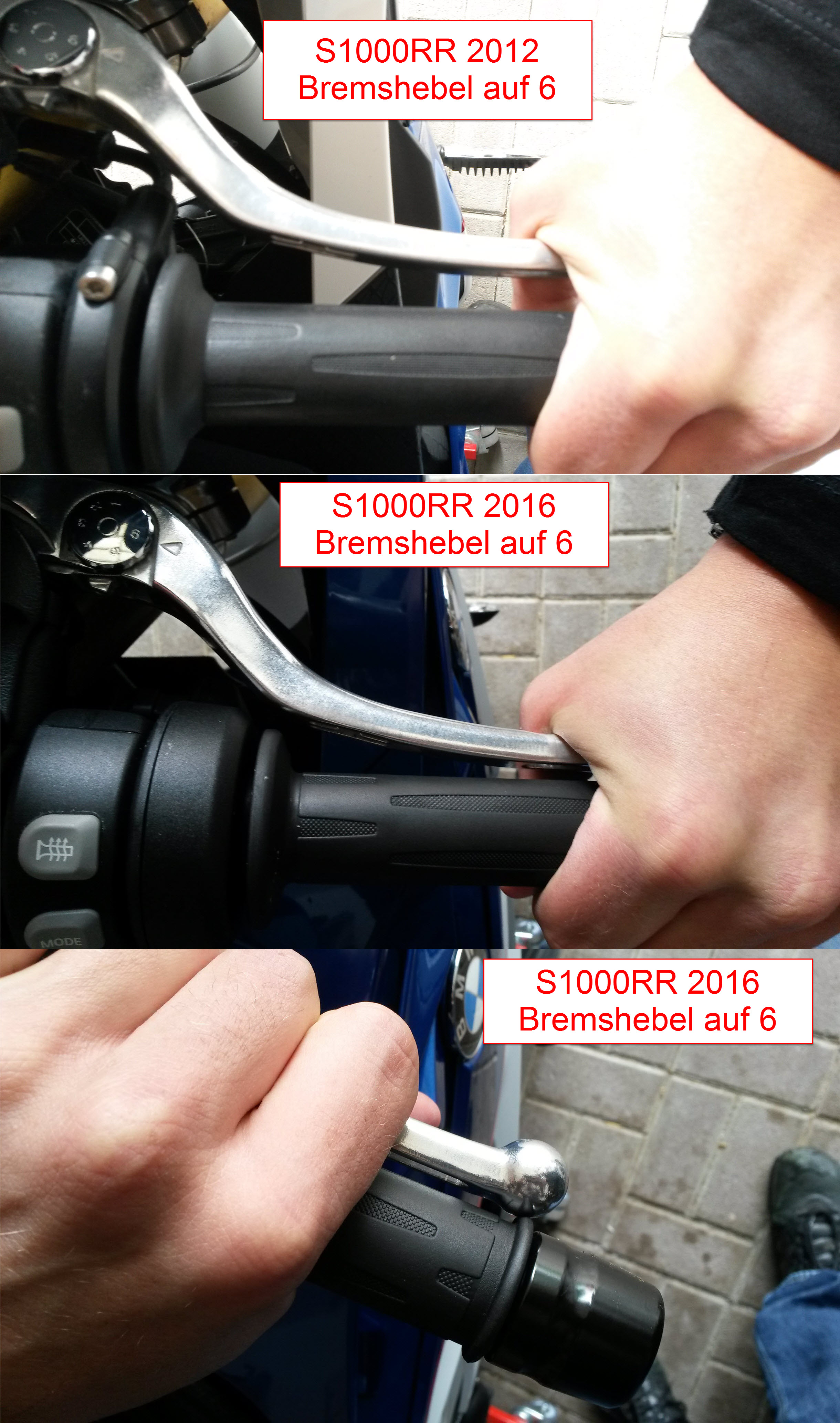 ich habe offensichtlich das gleiche Problem an meiner im März 2016 gebauten S1000RR. Schon bei der Übergabe ist mir aufgefallen, dass sich der Bremshebel im Vergleich zu meiner 2012er relativ weit nach hinten ziehen lässt. Bei der Einfahrkontrolle habe ich das bemängelt, jedoch ohne Ergebnis.