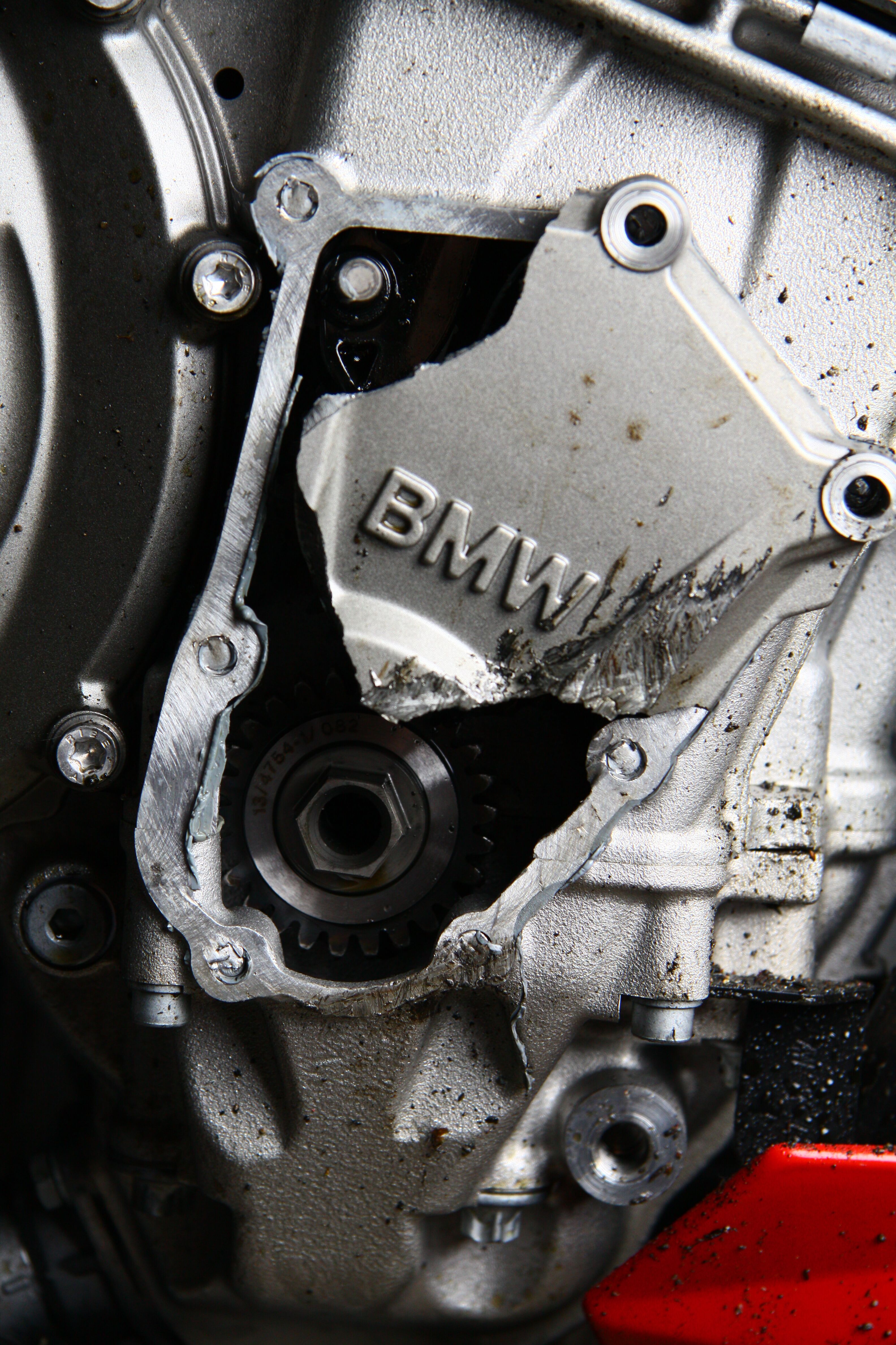 nach links -> "Generatorabdeckung" BMW-Teilenummer 11147725738 (Ersatzteilpreis ca. 350 Euro) wird angeschliffen, die oben genannten Kufen haben da gar keinen Nutzwert.