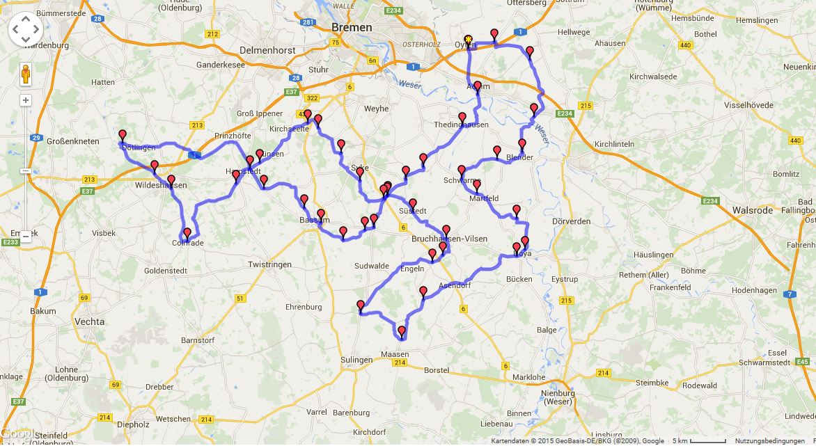 Das Stevens in Martfeld kenne ich sehr gut, da bin ich oft. Bin ich in 25 Min. wenn ich kräftig am Kabel ziehe.
