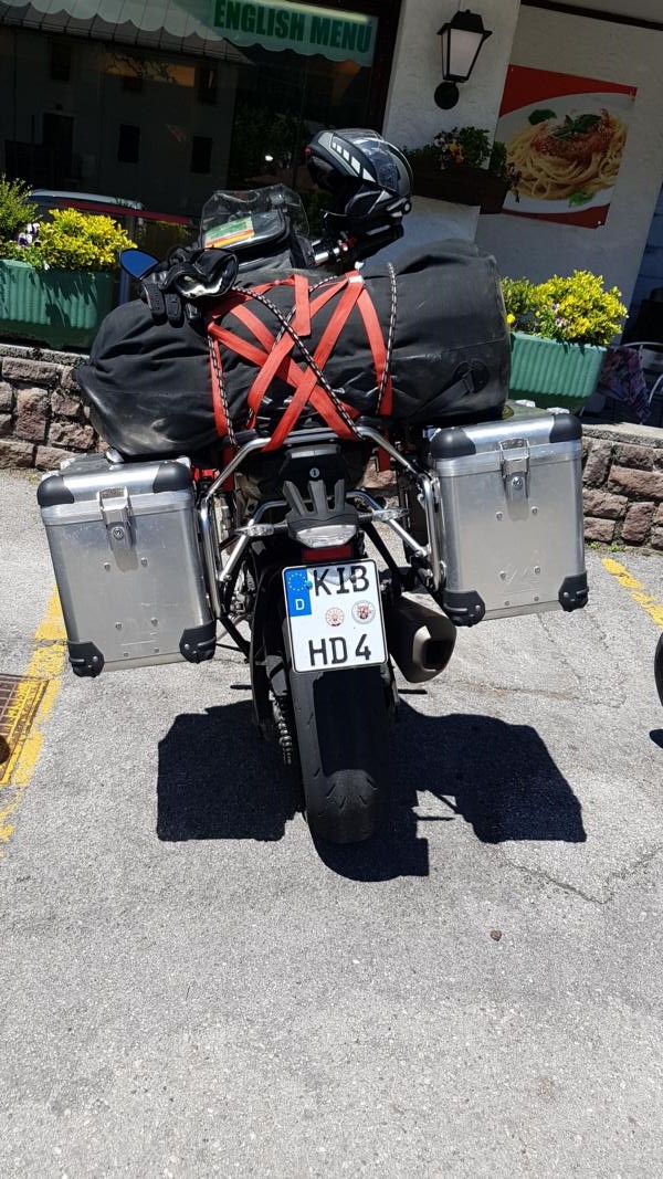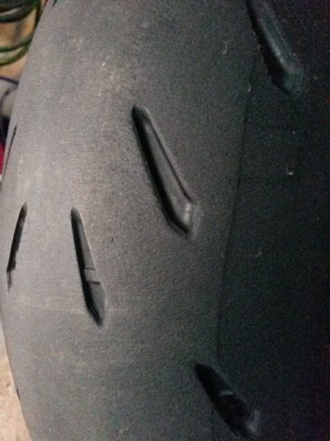Beim Geradeausfahren mal etwas am Lenker wackeln, gibt die erste Rückmeldung, das war ok. Dann bisje Klein-klein durch die Hintergassen einer kleinen Ortschaft, Wohngebiete mit Pflaster und Verbundsteinen, auch in Ordnung. Aus der Ortschaft raus in einen Kreisel. Da hab ich dann einfach mal 3 Runden gedreht und immer mehr Gas gegeben, bis ich den Eindruck hatte, dass ich den Übergang von Silika- auf Rußmischung am Hinterrad spüre. Im Trockenen bin ich der Meinung das zu merken und im Nassen glaube ich es auch. Auf jeden Fall war das Vorderrad über jeden Zweifel erhaben und hinten habe ich mich rangetastet. Ich bin zwar nicht gerutscht, aber irgendwie hat sich das Enmpfinden oder die Rückmeldung verändert und dann habe ich es sein lassen.