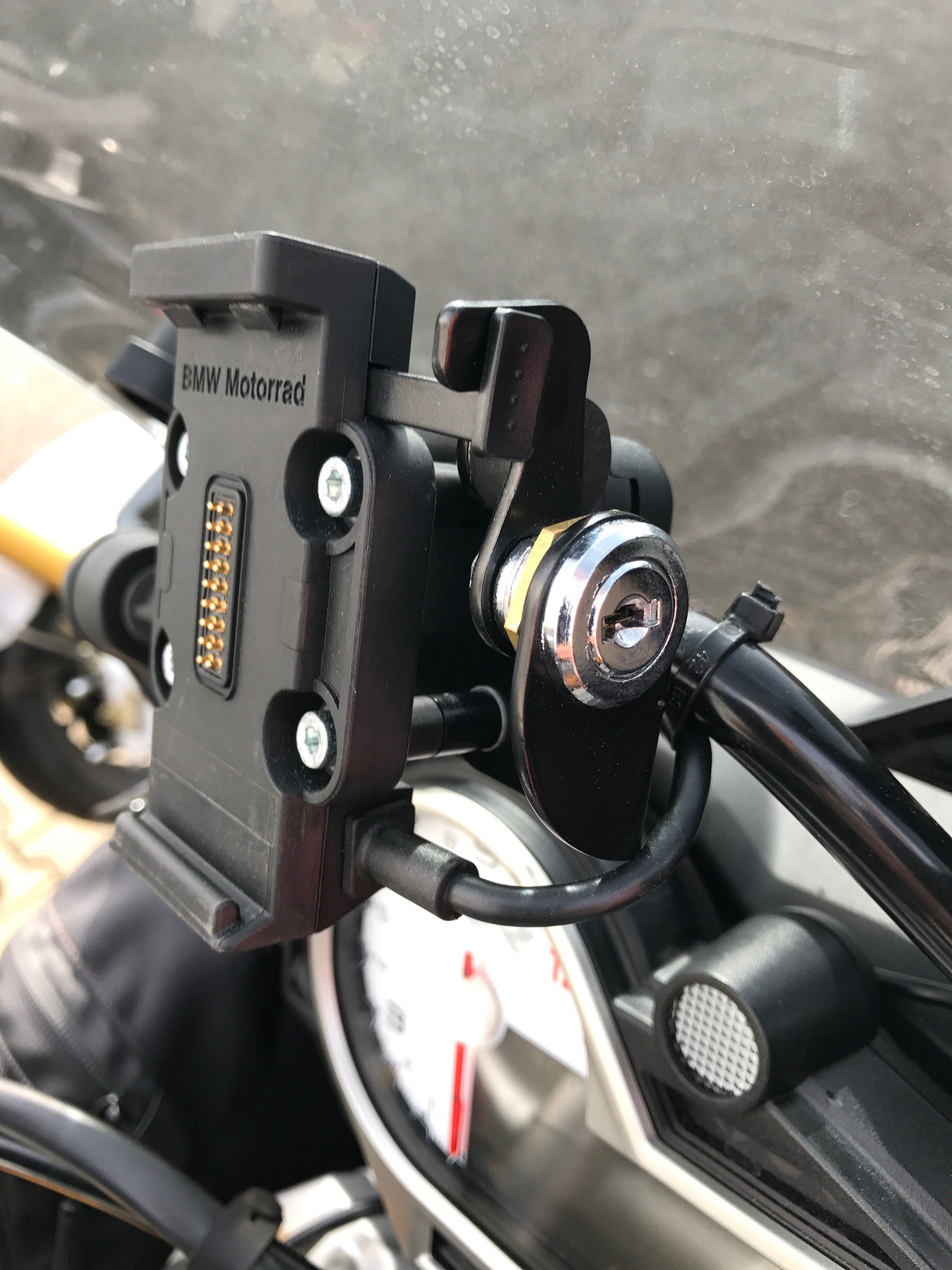 für alle, die gerne ihren BMW-Navigator V oder VI an der XR sichern möchten, ohne das große Frühstücksbrett der GS montieren zu wollen, gibt es jetzt eine Lösung von Wunderlich. Die hält zwar keinen Profi-Dieb ab, der mit dem großen Panzer-Knacker-Besteck anrückt, taugt mir aber sehr, um z.B. beim Tanken eine gewisse Mindestsicherung des teuren Navi zu haben. Und baut recht klein, was mir optisch viel besser gefällt als die Lösung an der GS. Kostet einen Fuffi und sollte in den nächsten Tagen verfügbar sein.