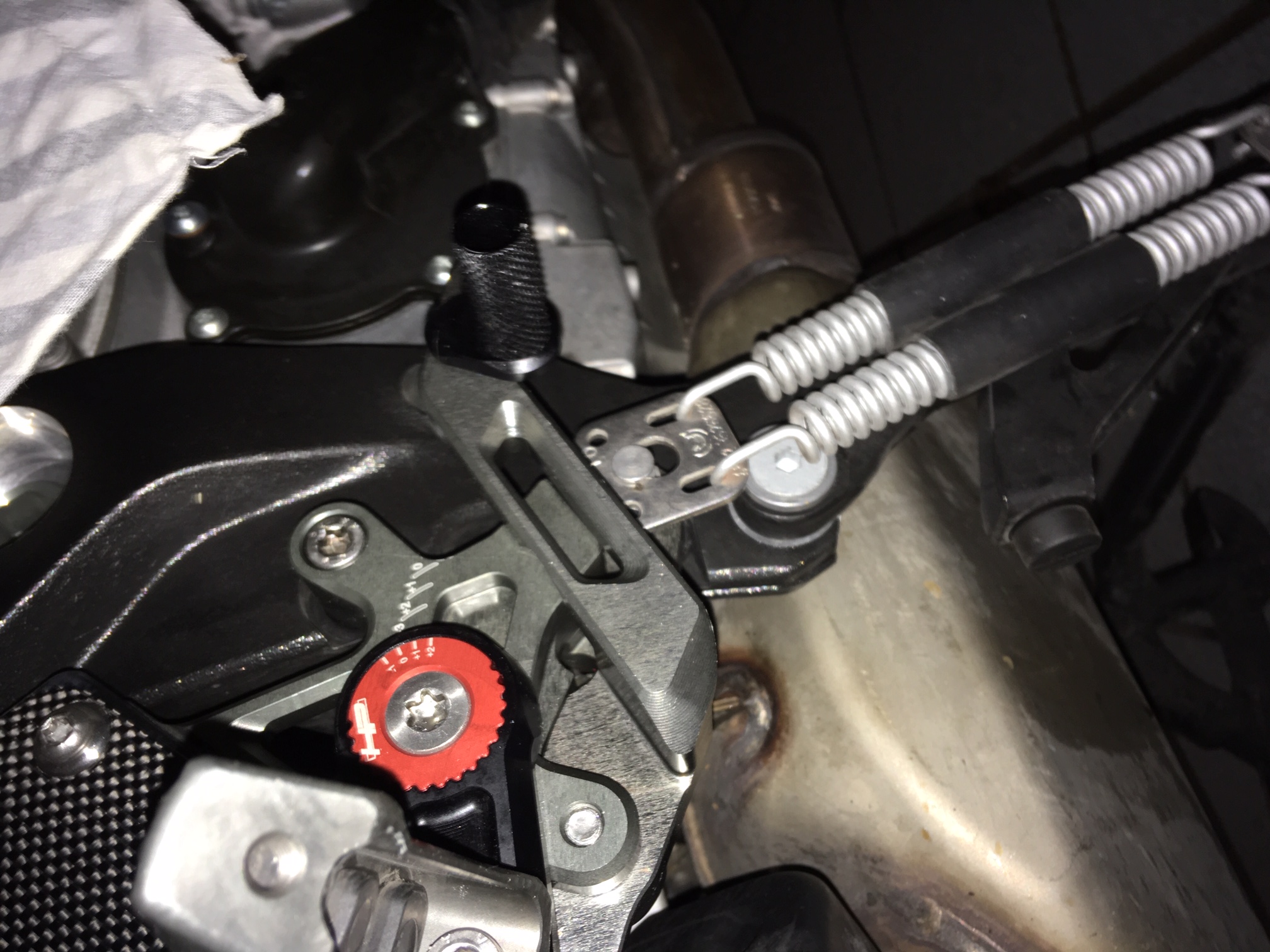 Musst an einer Stelle die Schraube für den Hauptständer verwenden(Feder Widerlager)