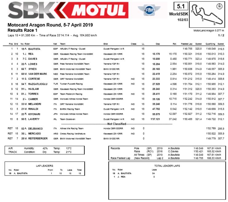 Heli hat geschrieben:Sykes 4. nach FP2 im schnellsten Versuch war er auf Bestzeit unterwegs, im letzten Sektor verliert er dann 0,7 Sekunden auf Bautista![]()
