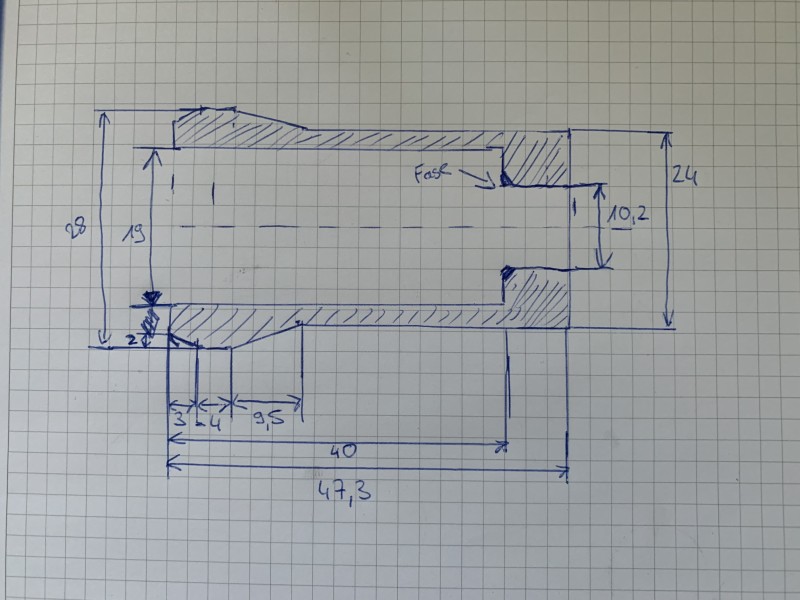 Da ist mir was verrutscht, 19mm ist für die Bohrung, die Fase habe ich nicht bemaßt.