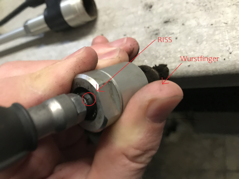 Die Ursache ist schnell klar: die Dichtung ist rissig, Wasser eingedrungen.