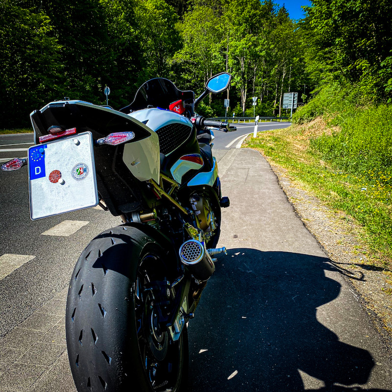 Allerdings habe ich beim sehr schnellen durchmessen meiner Testkurven festgestellt, das der normale Roadmodus am besten mit der Eigendämpfung des Michelin Power Cup 2 harmoniert und ich damit am besten schnell fahren kann. Dann wankt die Kombination von S 1000 R und Power Cup 2 am wenigsten.