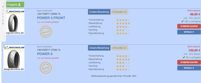 Ich hab jetzt meine Favoriten raus gesucht und würde gerne den „passenden“ Reifen für mein Profil versuchen.