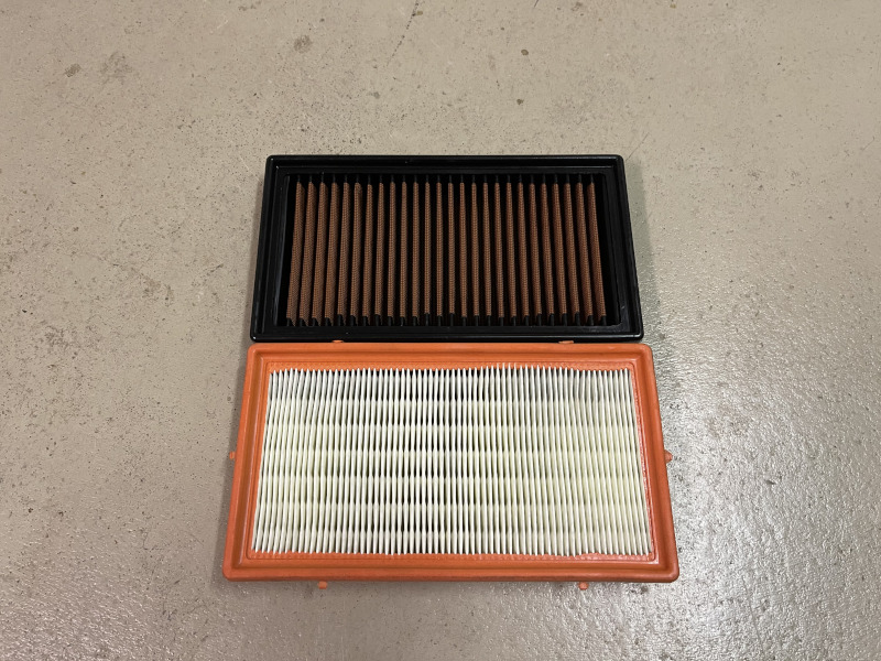 Danach ist alles ein Kinderspiel, die obere Luftfilter-Abdeckung lösen, den serienmäßigen Filter entfernen, den neuen einsetzen