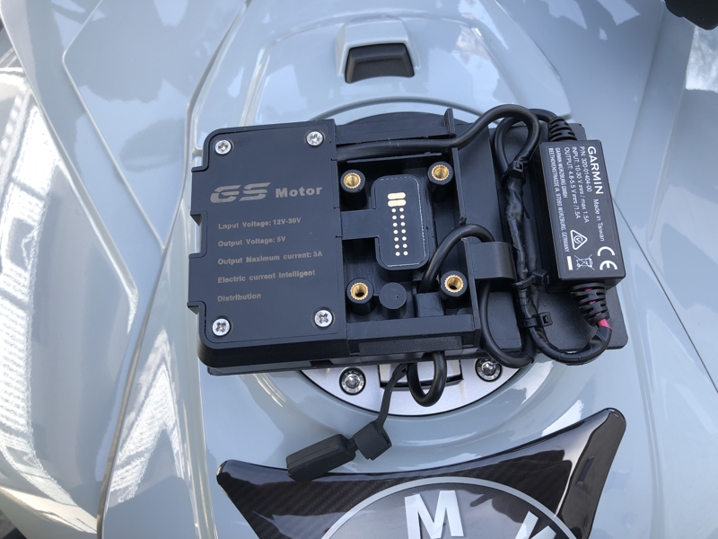 Wie gelöst? - In die "Navihalteurung für Handys" habe ich ausgangsseitig ein 2-adriges Kabel gelötet (Plus / Minus) und dort den Garmin-Spannungswandler eingangsseitig angeschlossen. Das Kabel vom Spannungswandler ausgangsseitig nach vorne geführt und auf die Hartschaumfplatte die Halterung vom Garmin-Zumo montiert. Zumo in die Garmin-Halterung geklipst, "Navihalterung für Handys" in die werksseitige Navi-Vorbereitung geklipst, fertig.