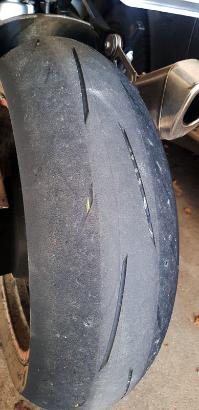 Ich mag Reifentests und habe jedesmal Tränen in den Augen , wenn nach 2 Tagen Training auf dem Schräglagenmotorrad , die Reifen außen blank sind , so ist es nun mal bei 51 Grad ..., was auch schwer auffällt , die jeweilige unnötige Schräglage in Kurven trägt zum erhöhten Verschleiß bei , also beim Feilen mal die Feile etwas mehr auf der Kante belasten ...