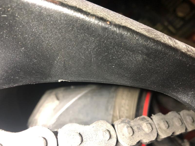 Das Thema hat mich sofort nachdenklich gestimmt, ich habe bis jetzt zwar keine Klappergeräusche gehört (muss zu meiner Schande gestehen das ich zu 90% mit Musik fahre), bin aber sofort zum Moped und habe mich auf den Boden geschmissen und sehe da ich sehe nichts, keine Schlag- oder schleifstellen an der Schwinge ThumbUP und das obwohl ich meine Kette wieder etwas nachspannen müsste scratch
