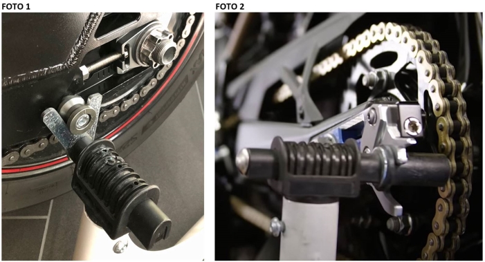 Bei den neuen M Kettenspannern ist ja diese ähnliche Gabel hinten angeschraubt, also musst du am Montageständer selbst jetzt eine andere runde Aufnahmemöglichkeit für den M Kettenspanner haben!
