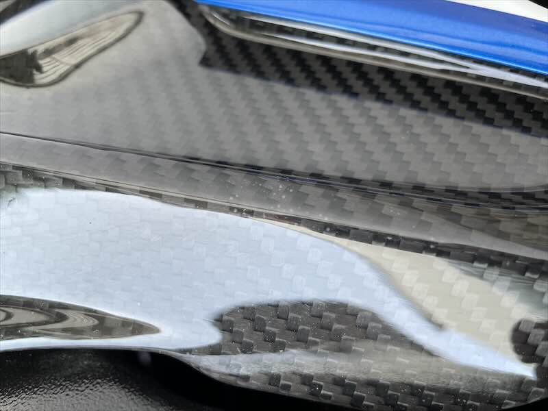 ich habe die Tage gemerkt, dass ich auf den Carbonteilen weiße/helle Flecken sehe. Es sieht so aus als ob sich die Klarlackschichr lösen würde, allerdings merkt man mit dem Finger keine abbröckelnden Stellen oder dergleichen.