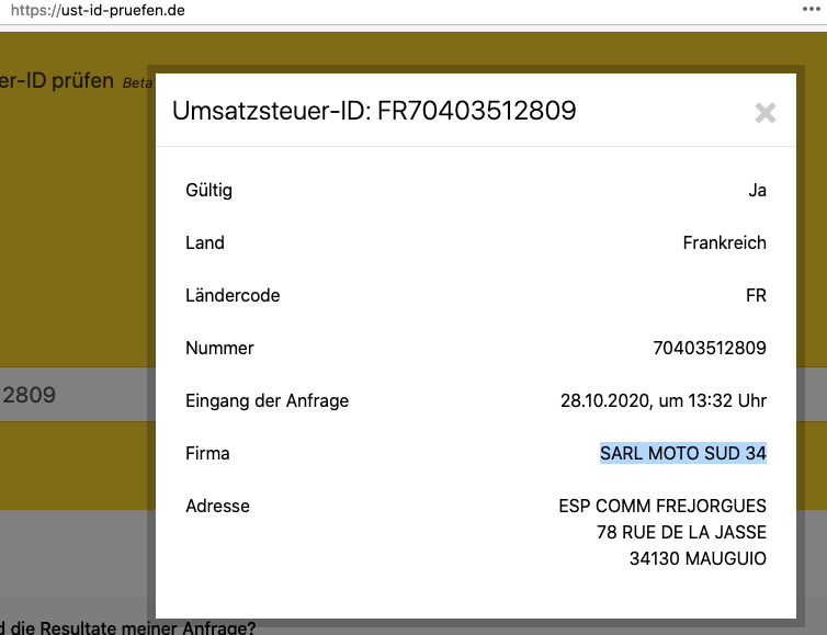 Und die Umsatzsteuer-Identifikationsnummer, ist laut https://ust-id-pruefen.de/ auch nicht bekannt.